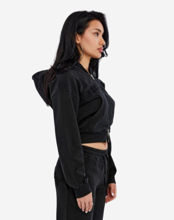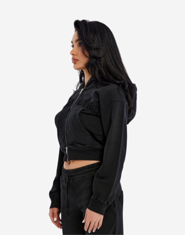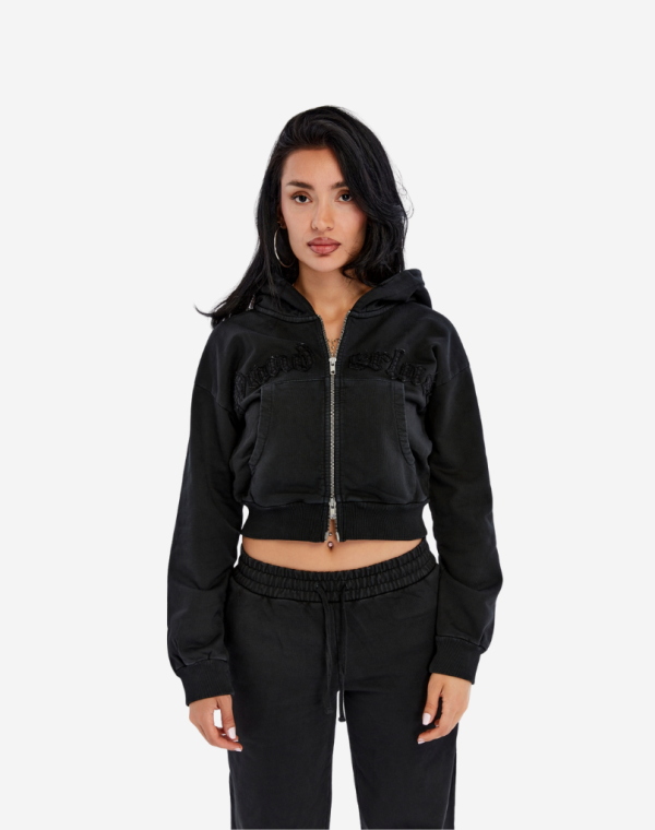 - Made from 100% premium French terry cotton. Features an oversized cropped fit, full metal zip closure, double-lined hood, ribbed trims, and subtle Wanderlust chest embroidery.
